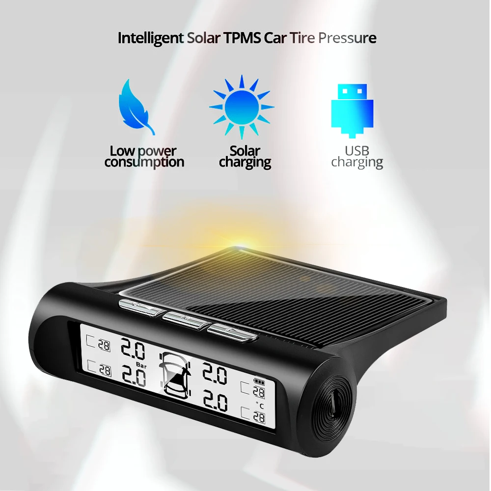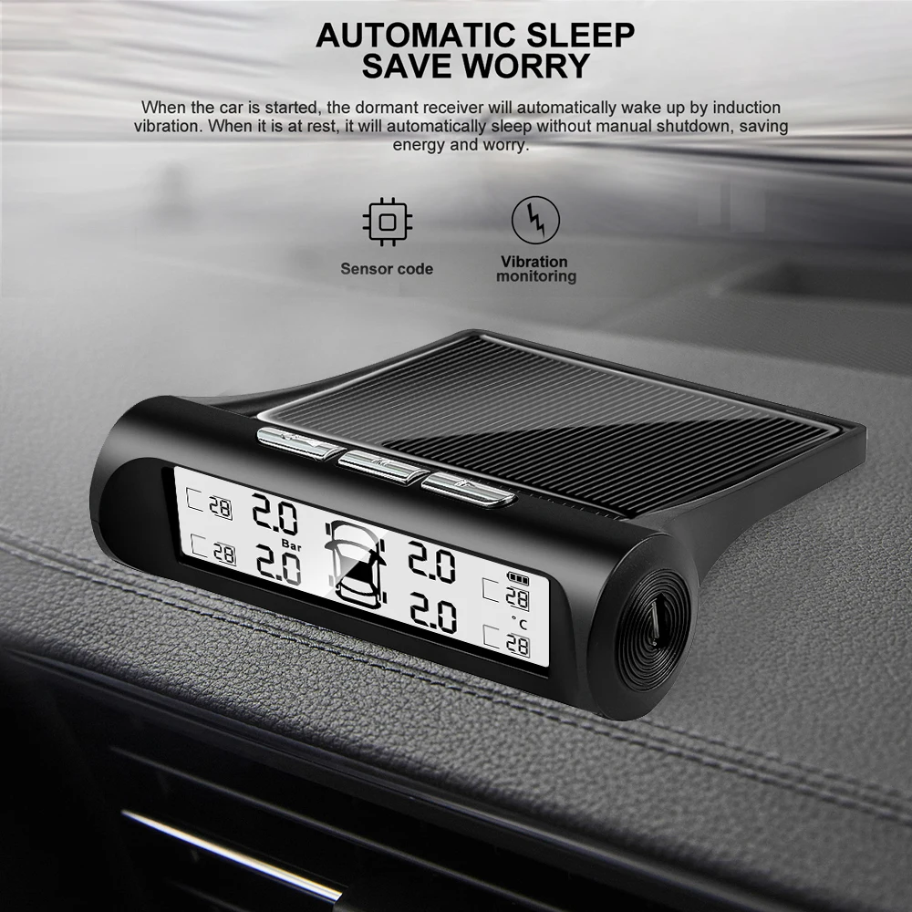 Energia Solar TPMS Sistema Monitor Alarme Pressão Pneus Carro Auto Sistemas Alarme Segurança Aviso Temperatura Pressão Pneus